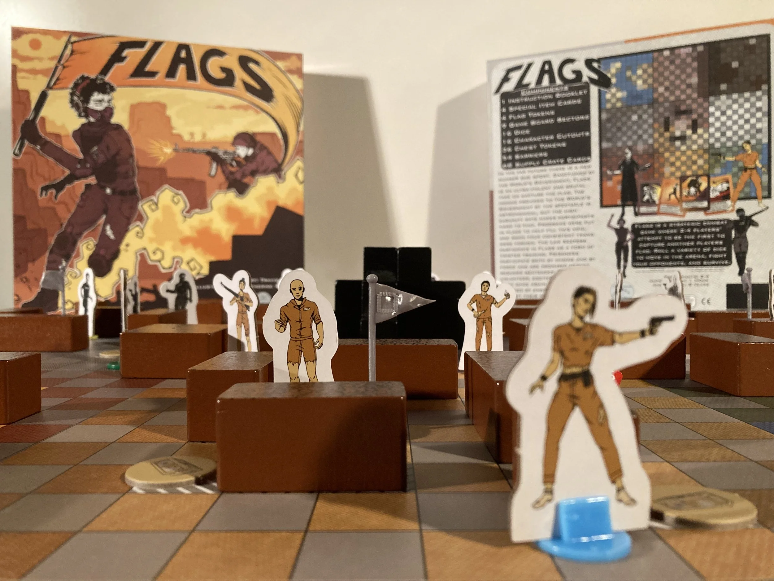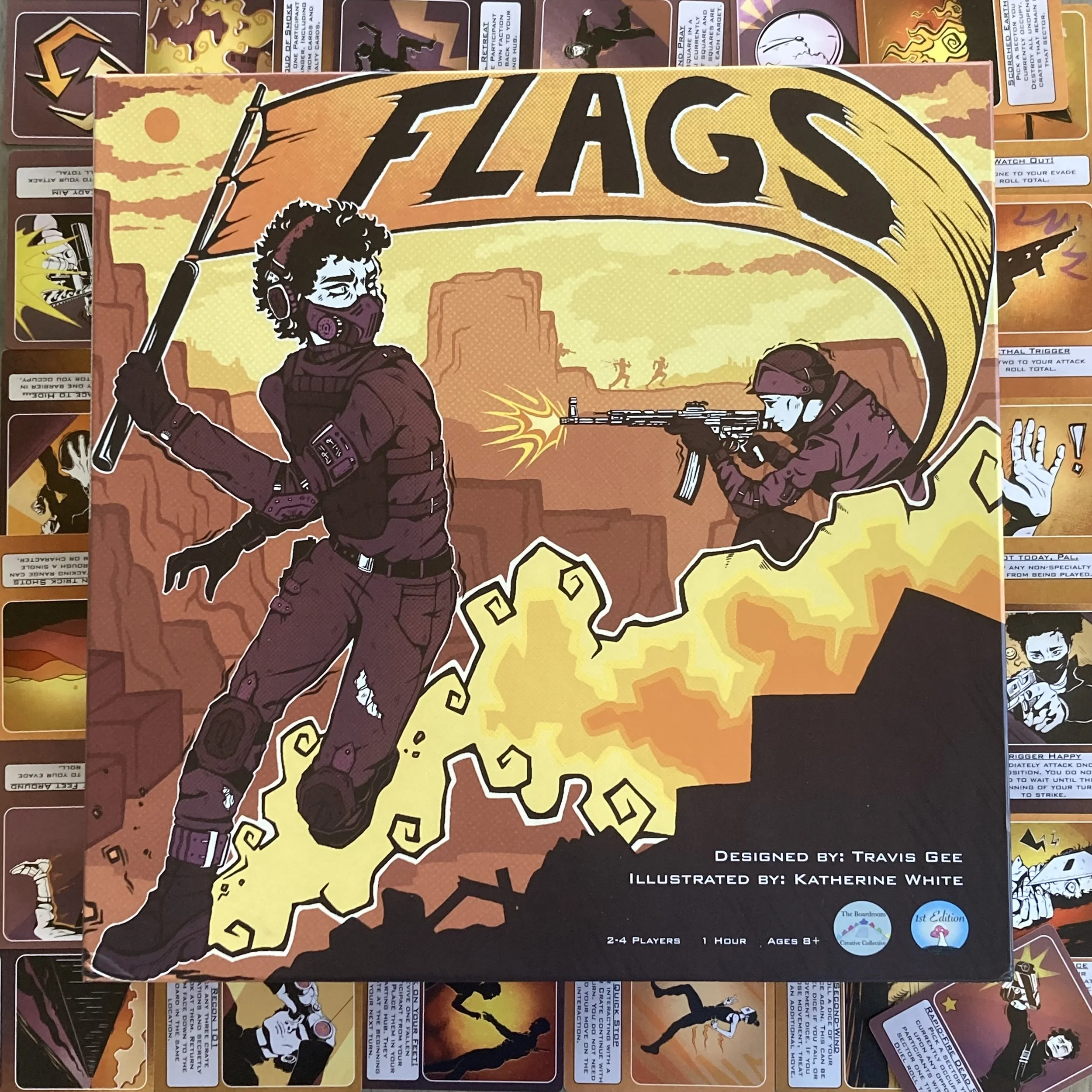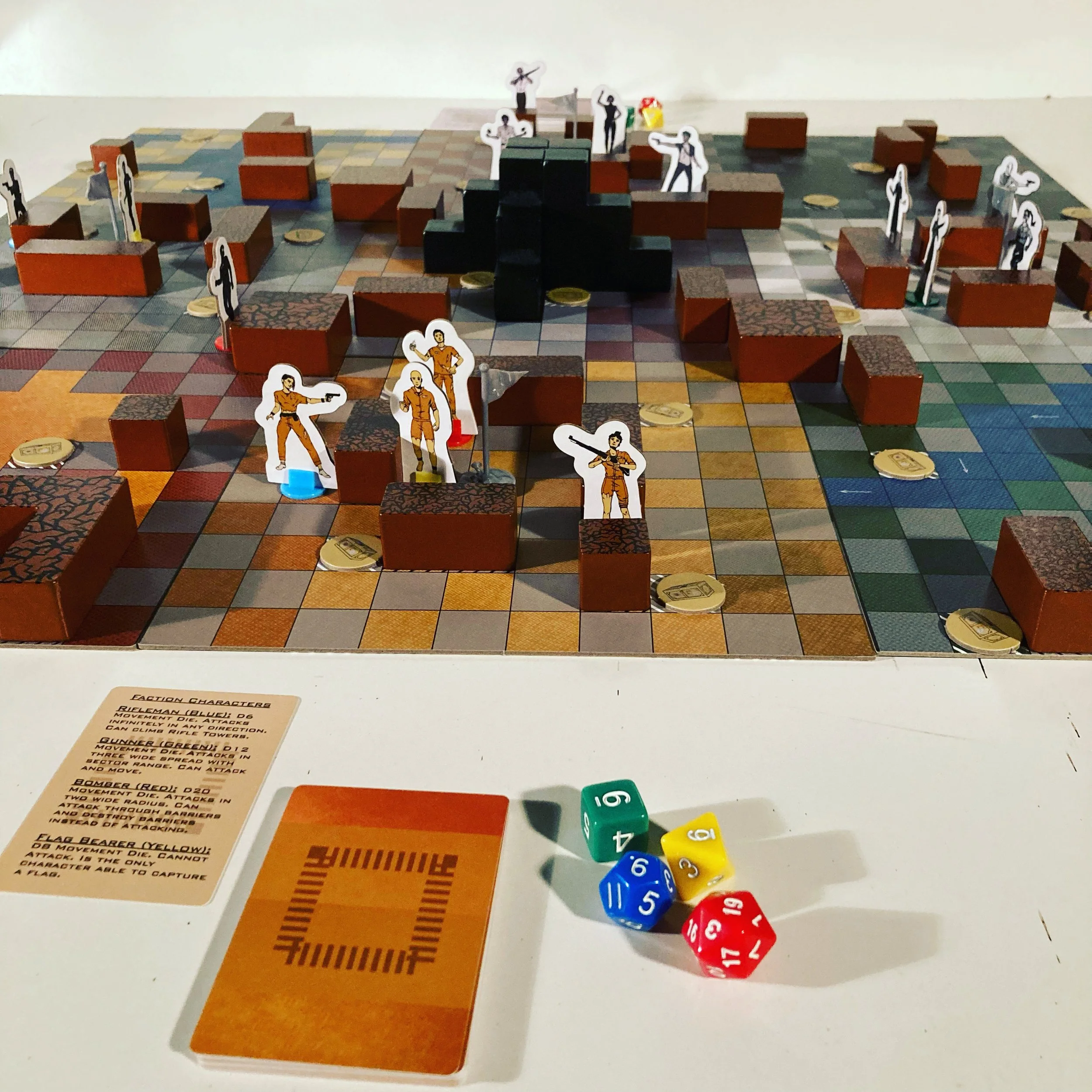 Flags is the most ambitious game I’ve ever been a part of—an intense dystopian take on Capture the Flag where every decision could tip the scale between victory and defeat. Players roll dice, move their characters, and strategize to dominate the arena. I served as the creator, principal designer, and lead graphic designer, crafting every aspect of the game to ensure a dynamic, immersive experience.