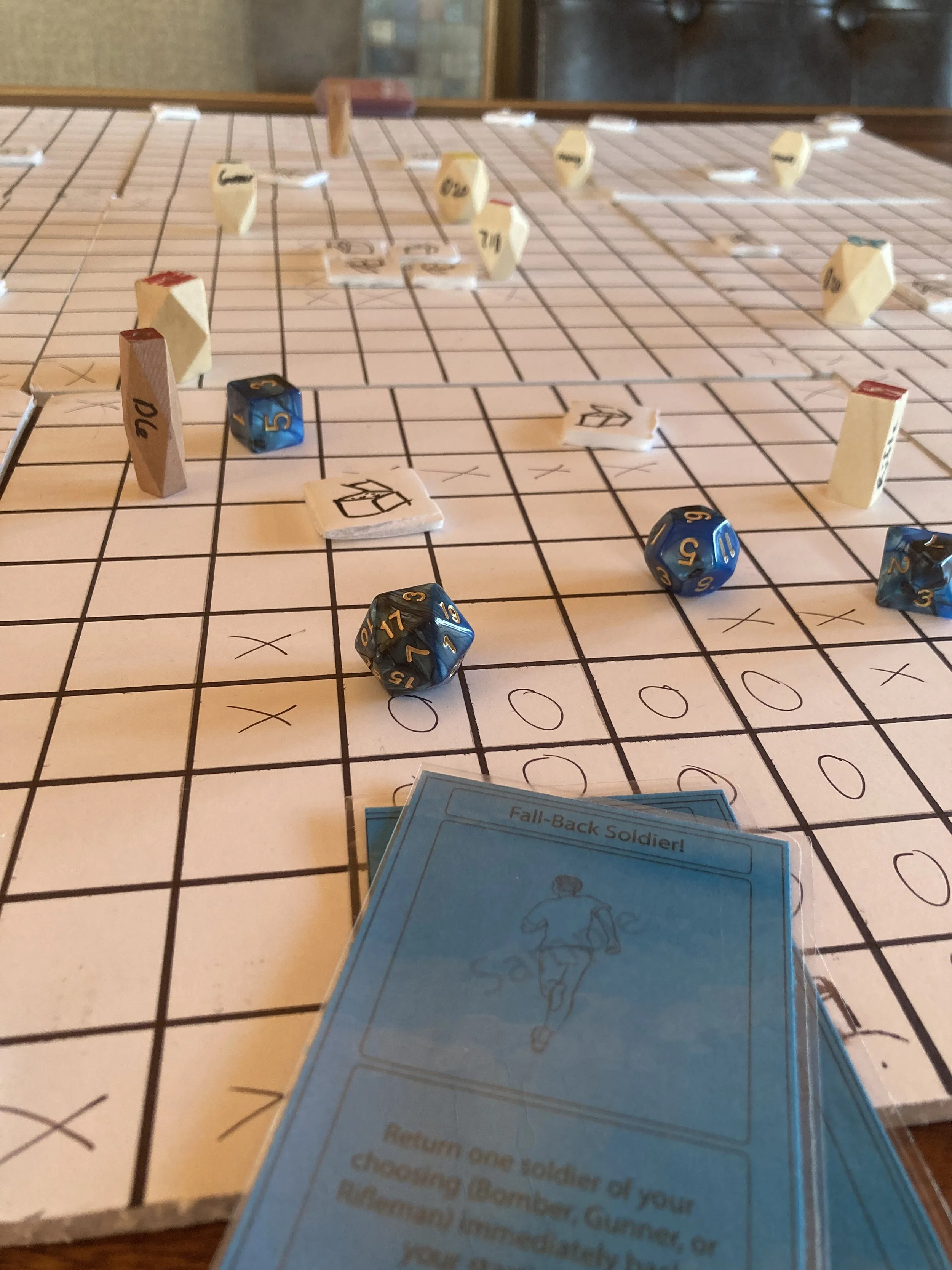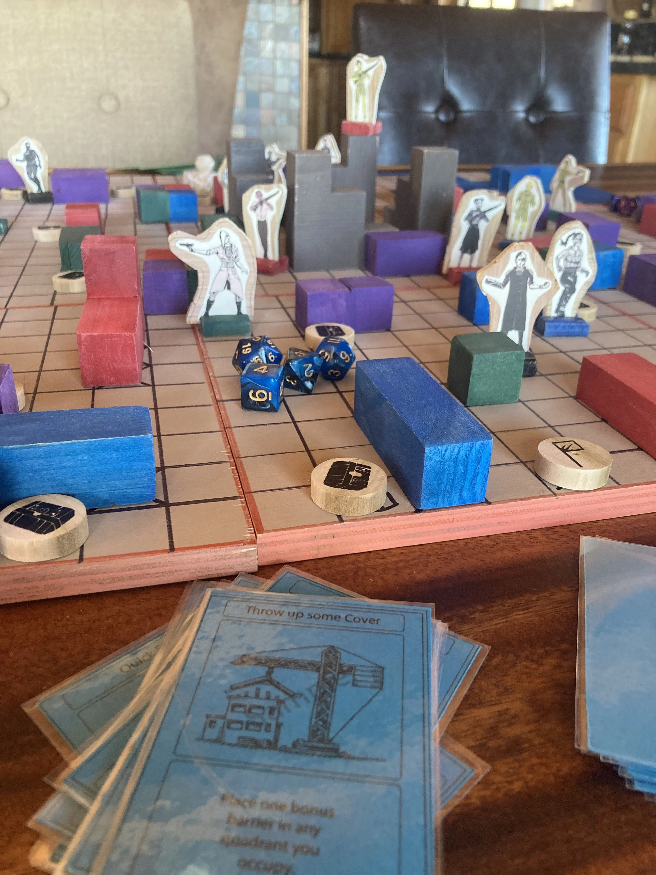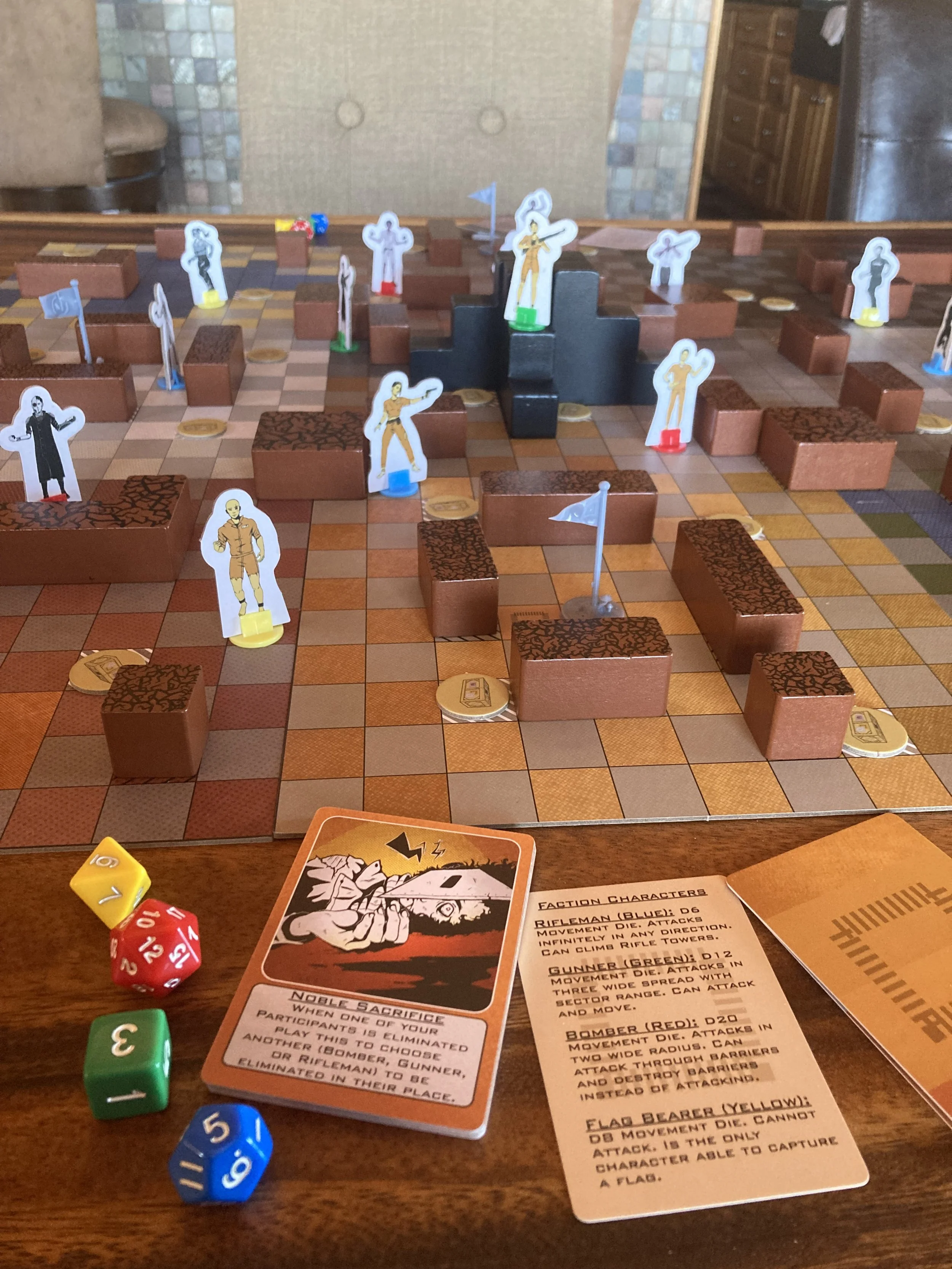 Flags is the most ambitious game I’ve ever been a part of—an intense dystopian take on Capture the Flag where every decision could tip the scale between victory and defeat. Players roll dice, move their characters, and strategize to dominate the arena. I served as the creator, principal designer, and lead graphic designer, crafting every aspect of the game to ensure a dynamic, immersive experience.